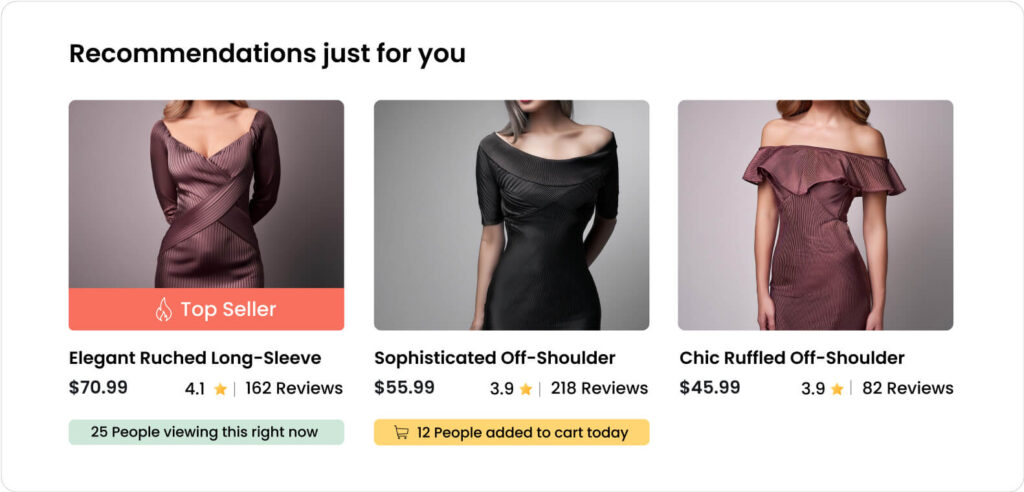 Reduces Purchase Anxiety: Showcasing positive reviews or highlighting popular choices can alleviate concerns about product quality, fit, or value.
