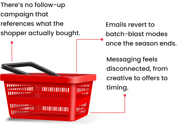 69% of holiday shoppers fail to make a second purchase within six months of their first. Brands that don’t act quickly to re-engage risk losing the window of emotional resonance, product affinity, and post-purchase intent within just 30 days.