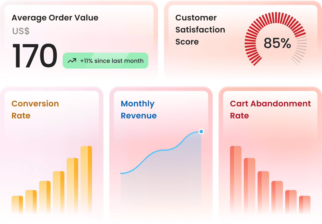 Track Average Order Value, Items Per Order, Revenue Per Visit, etc. and optimize recommendations based on real-time shopper behavior