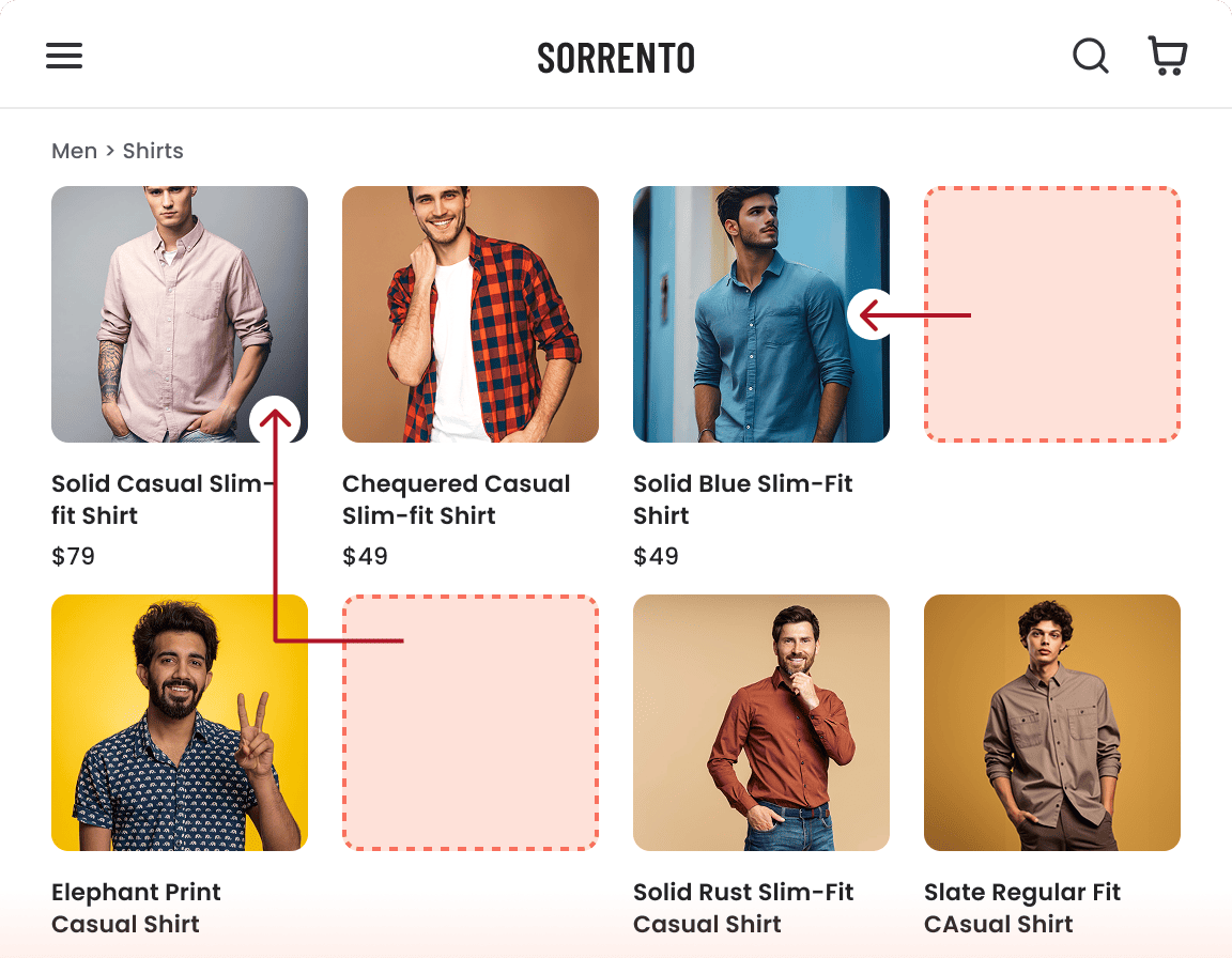 Re-sort the product display in real time, instantly matching the shoppers’ current and past preferences as they browse, as if you were re-arranging the in-store display for every visit.