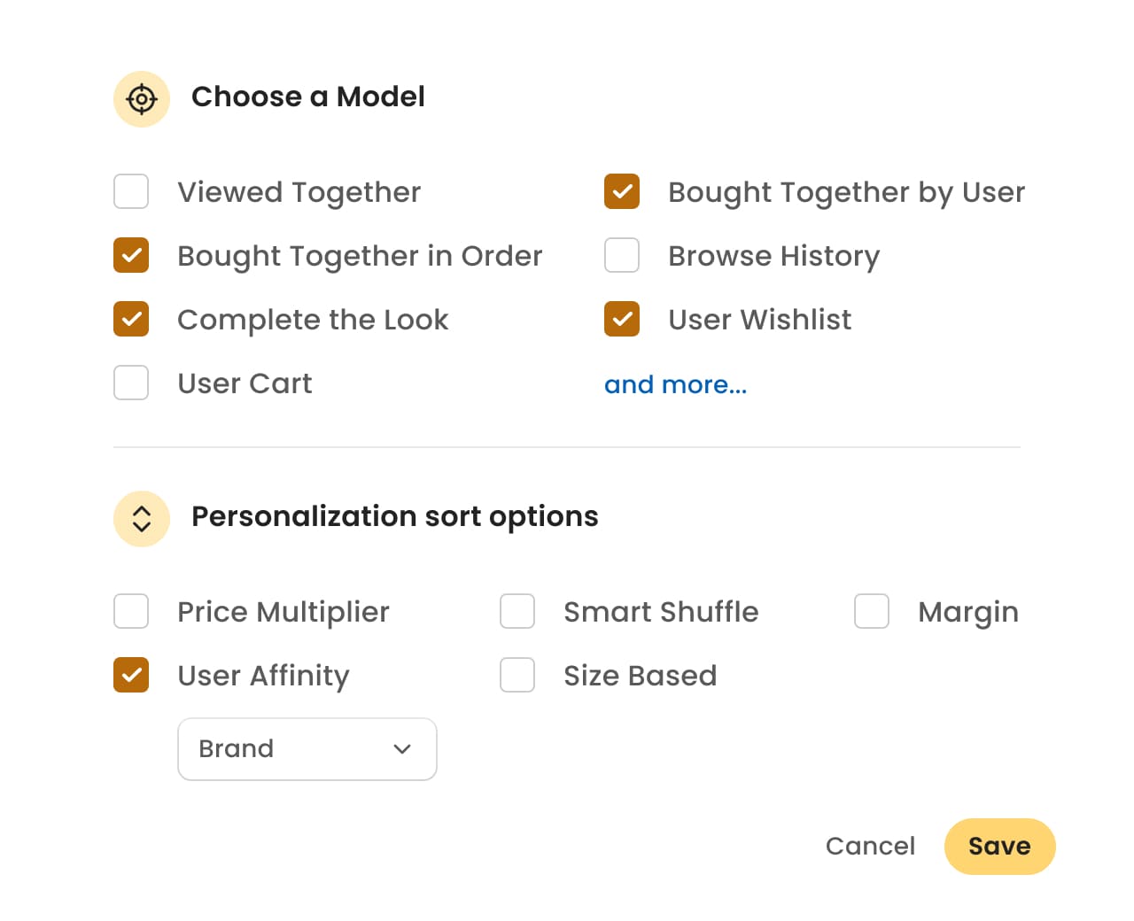 Yes, we understand that you may have specific business objectives that require manual merchandising, e.g. promote high margin brands or ensure certain products are never recommended. While Recommend constantly optimizes and selects the best performing products, we also allow you to boost, restrict, or set manual rules to help you meet your business goals. However, we suggest respecting the AI engine and avoid setting up too many restrictive rules that can end up creating a sub-optimal experience for the shoppers.