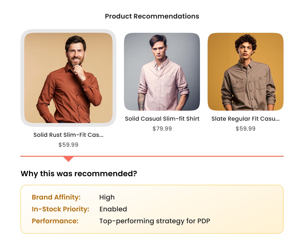 Balance manual curation and automated optimization by combining the best of real-time AI-driven decisioning and the most advanced set of merchandising tools and configurations on the market.