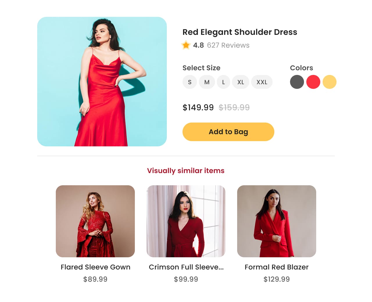 You can use our advanced recommendation software DeepRecs™, which leverages product data to contextually recommend new, seasonal, and long-tail products that would’ve otherwise remained buried due to lack of historical events. DeepRecs NLP uses deep learning algorithms to analyze catalog descriptions, reviews, and other textual data to infer relationships between products. DeepRecs Visual AI extracts features from product images and identifies relevant items for a personal shopper experience, in fashion & apparel and furniture verticals.
