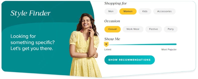Pantaloons is one of India’s largest fashion store brands. The brand has launched ‘Style Finder’ that allows shoppers to specify their preferred categories and the occasion, and view personalized product recommendations.