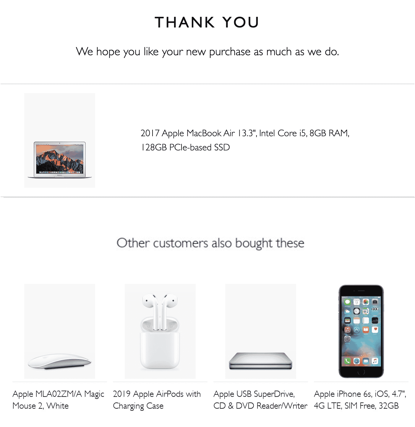 The client sends post-purchase emails to their customers, containing recommendations of products complementary to the ones the customer bought most recently.